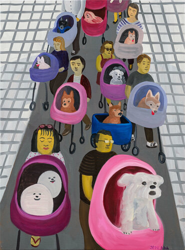 In her participating work, Huang Hai-Hsin continues her subtle observations of everyday life, capturing witty moments and humorous fragments with her uniquely recognizable painterly language.